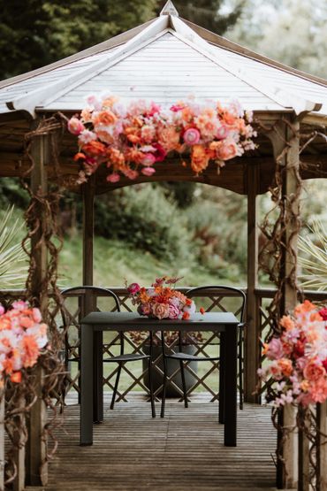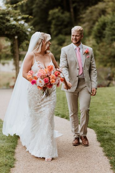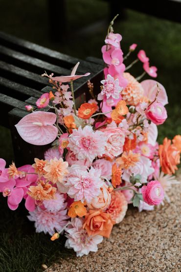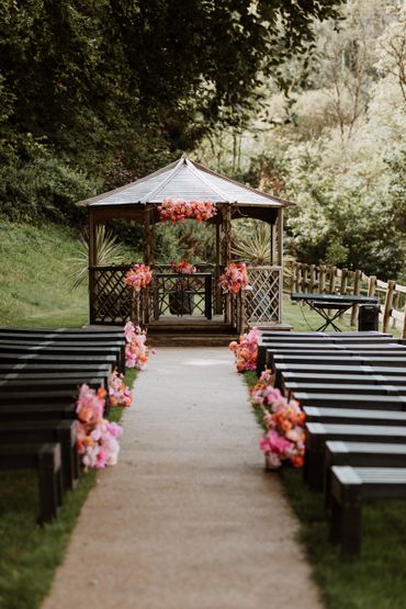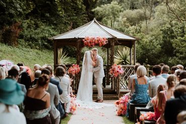 We were so lucky to have perfect weather for our day so our ceremony was set in the grounds up on the bank surrounded by beautiful tree's with a pergola at the end of the aisle. I choose to have vibrant and tall floral meadows lining some of the aisle with simple floral pieces to decorate the pergola- the surroundings are so beautiful I didn't want to distract from them.